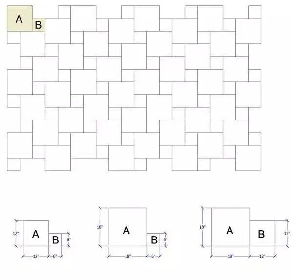 看着虽然简单,但是在铺贴的时候大小砖的尺寸却有三种搭配方式。