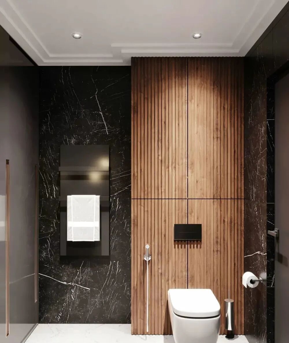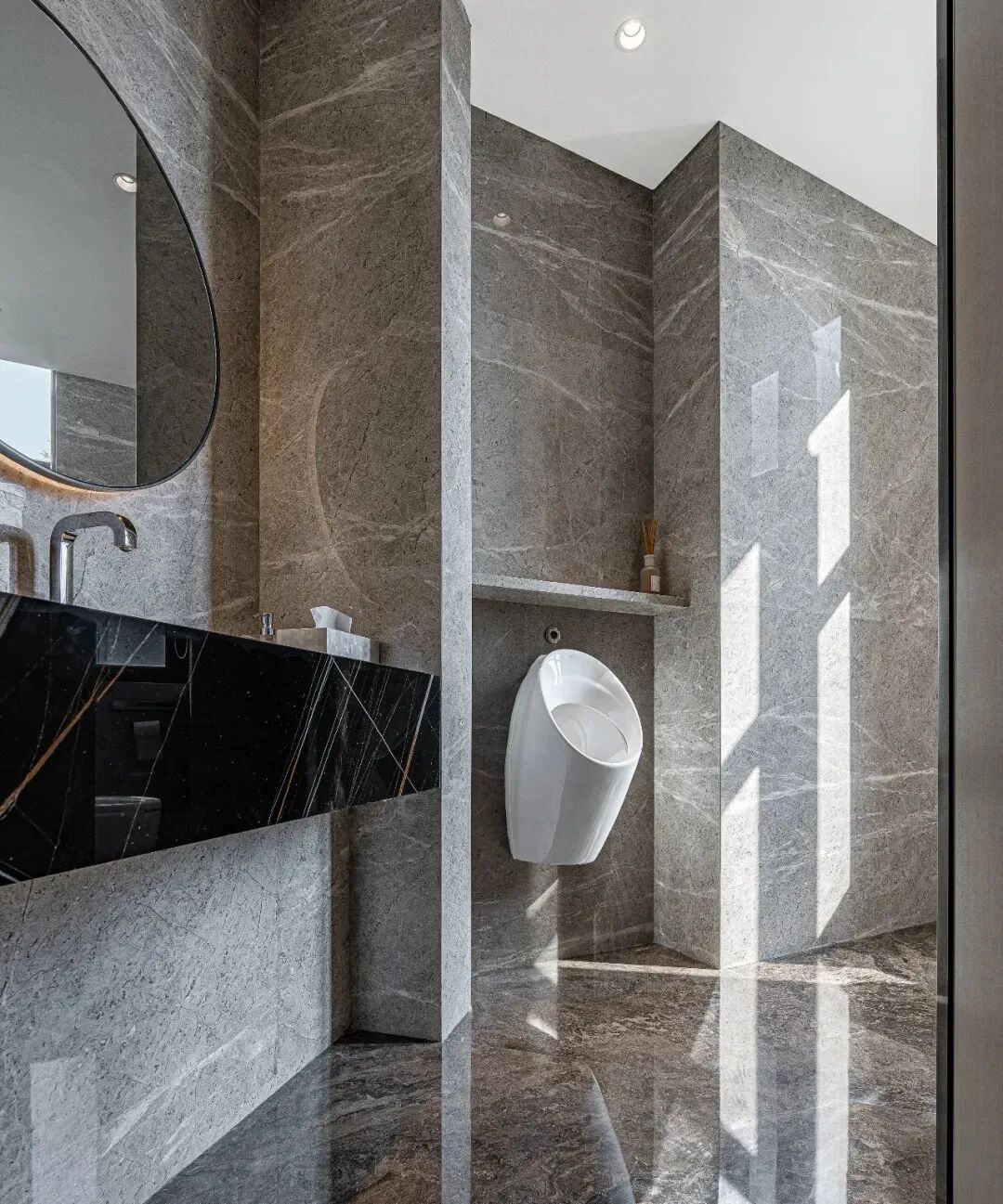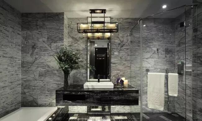 我们先从卫生间的整体装饰讲起,在别墅豪宅等地方的,卫浴空间的墙面经常是以石材进行整片墙面的铺贴,石材的硬度非常的高,材料坚固并且是纯天然的材料,方面清理打扫,重点是天然大理石的颜值超高。