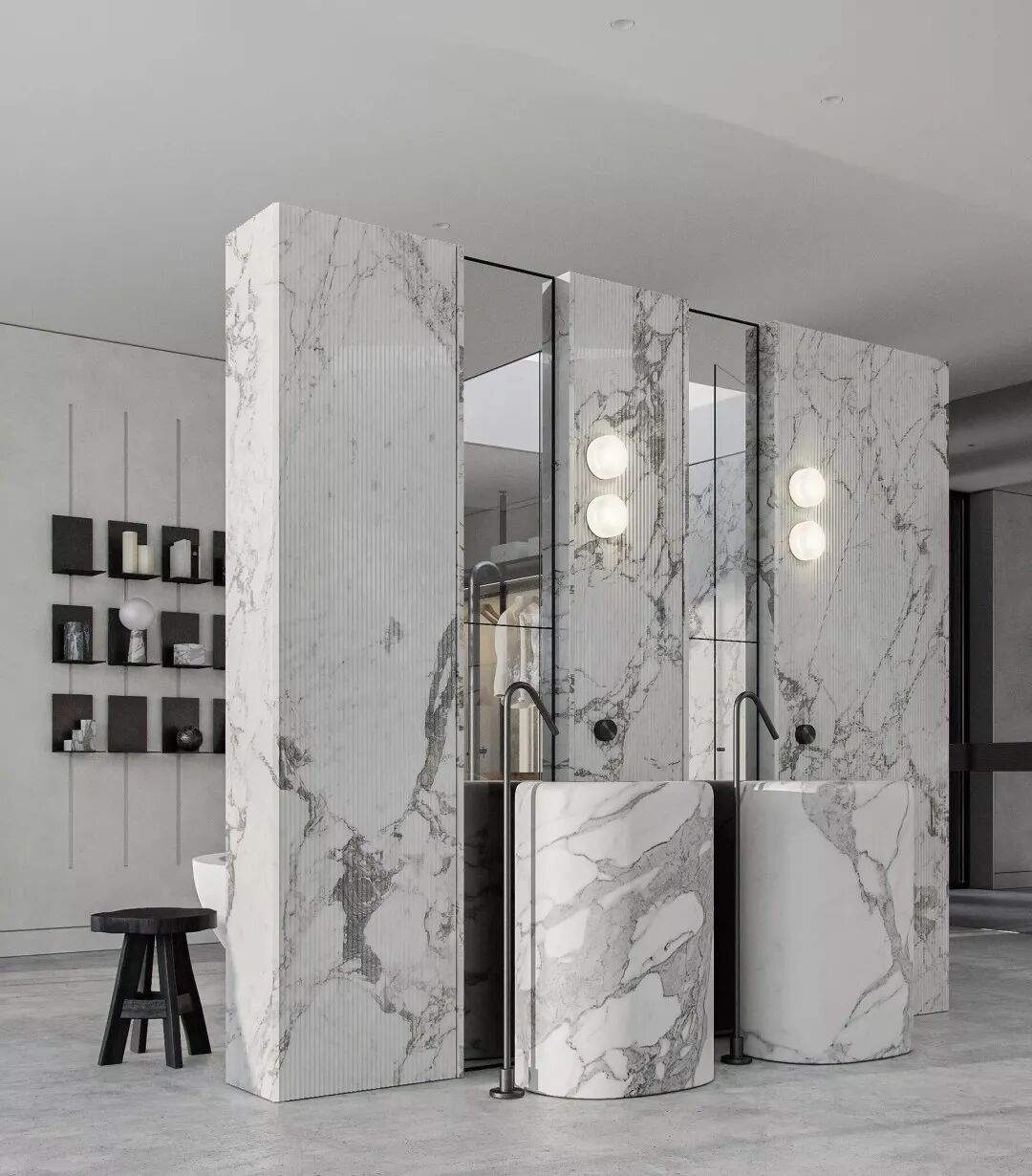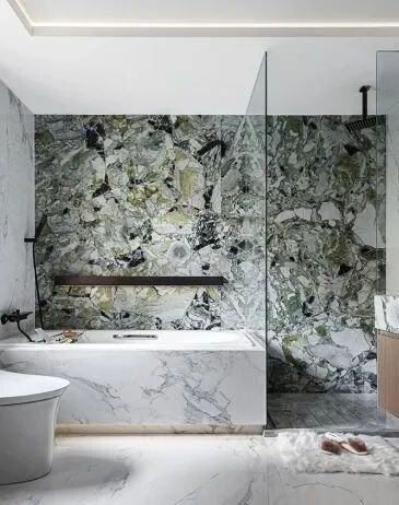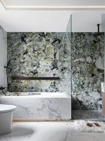 天然大理石本着自身的优势,在卫浴空间一直发挥着重要的作用,今天,小编就给大家整理一下卫浴空间中的石材设计。