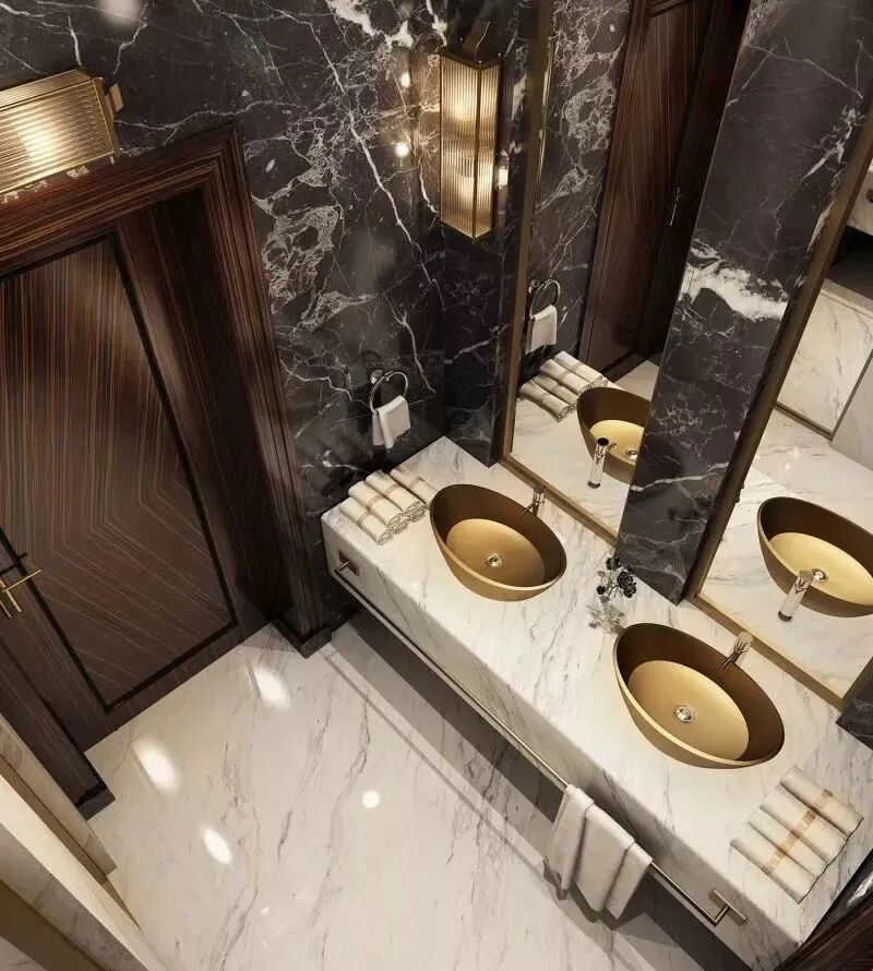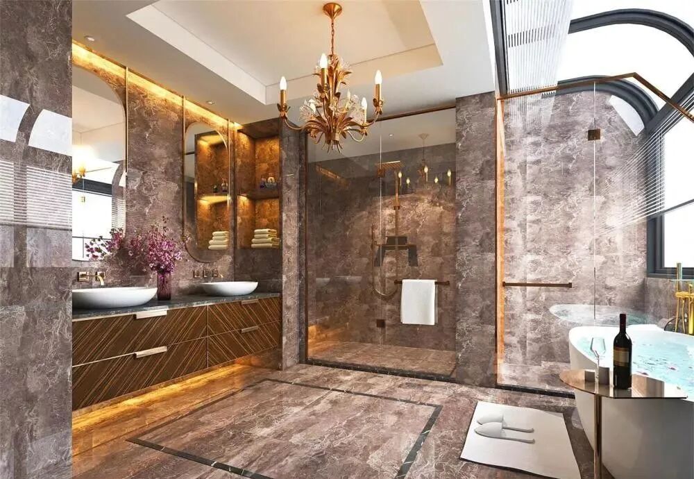 在别墅豪宅中,精致的卫浴可一定是标配,卫生间虽然比较狭小,也不是家中的开放空间,但也要讲究它的实用性与舒适性,当然颜值也是非常重要的。