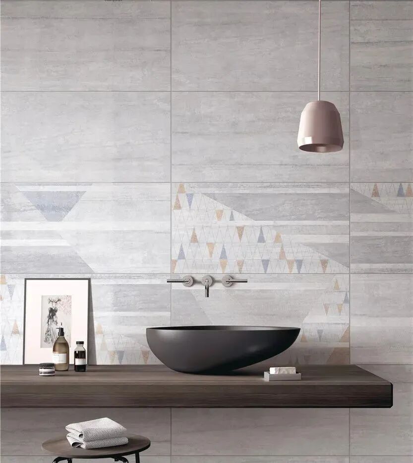 中板与小砖相比,设计不仅限于简约线条,更可以仿石、仿木、仿布等,有更强的可塑性,装饰起来能大大增强了空间整体性,满足于个性化、自然的装饰需求。