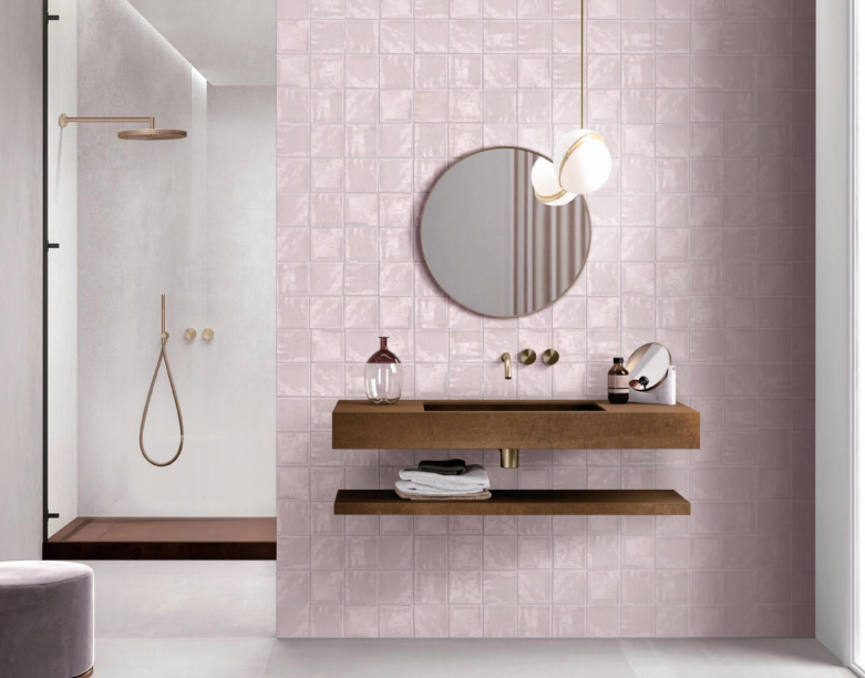 主流尺寸会有地砖300*300mm与墙砖300*600mm,地砖400*400mm与墙砖400*800mm的同花色墙地砖固定搭配,墙地对缝铺贴,也有很好的一体性效果。