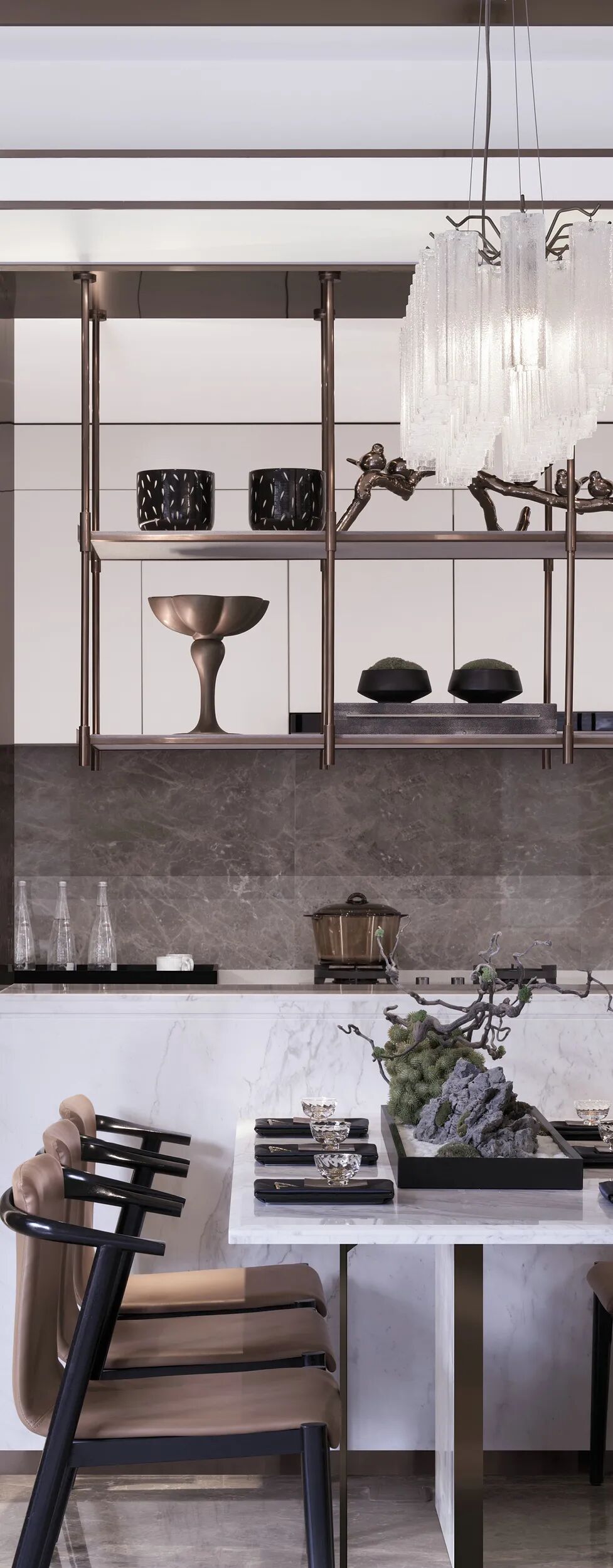 米尔曼说过:“冰冷的大理石使神恢复了生命”,而天然大理石也重新定义了新中式,正所谓,室无石则不雅,新中式风格非常讲究空间的层次感,因为好的层次才能塑造出悠远雅致的意境。