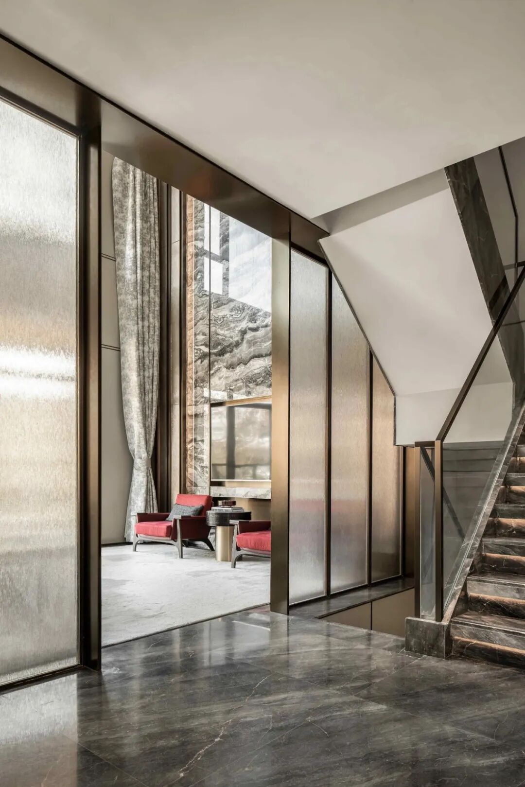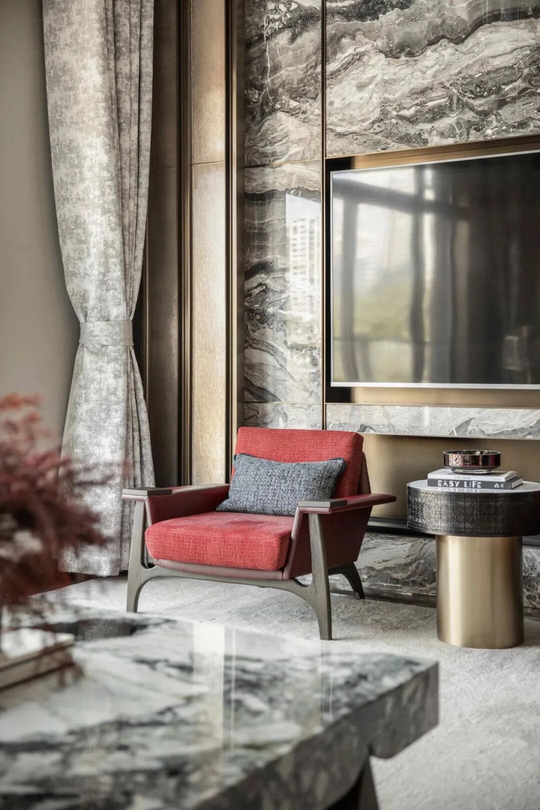天然大理石使整体空间感觉更加丰富,大而不空、厚而不重、通而不透,有格调又不显压抑。
