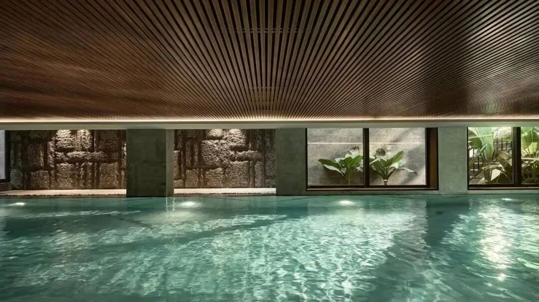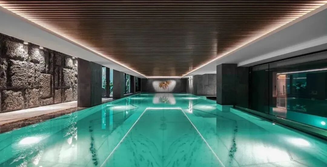 最让人惊叹的是地下室的超大室内泳池,两边还有绿植和灯具,漂亮又通风,真的不逊色于一些度假村。