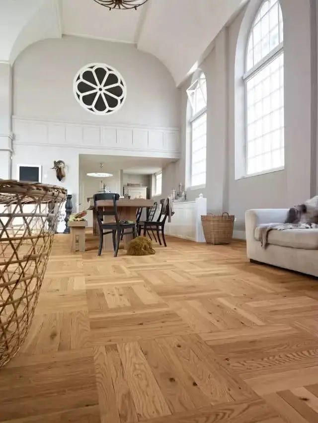 这种拼花的空间适应能力很强,不论是清新田园风还是工业复古风,都能呈现深浅不同的装饰效果,满足现代人的审美品位。