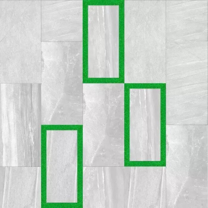 田字铺贴法是比较常见的铺贴方法,顾名思义就是像田字形一般拼接,每个小正方形由几块长方形拼接而成,与相邻的四面正方形排列方式都不同。