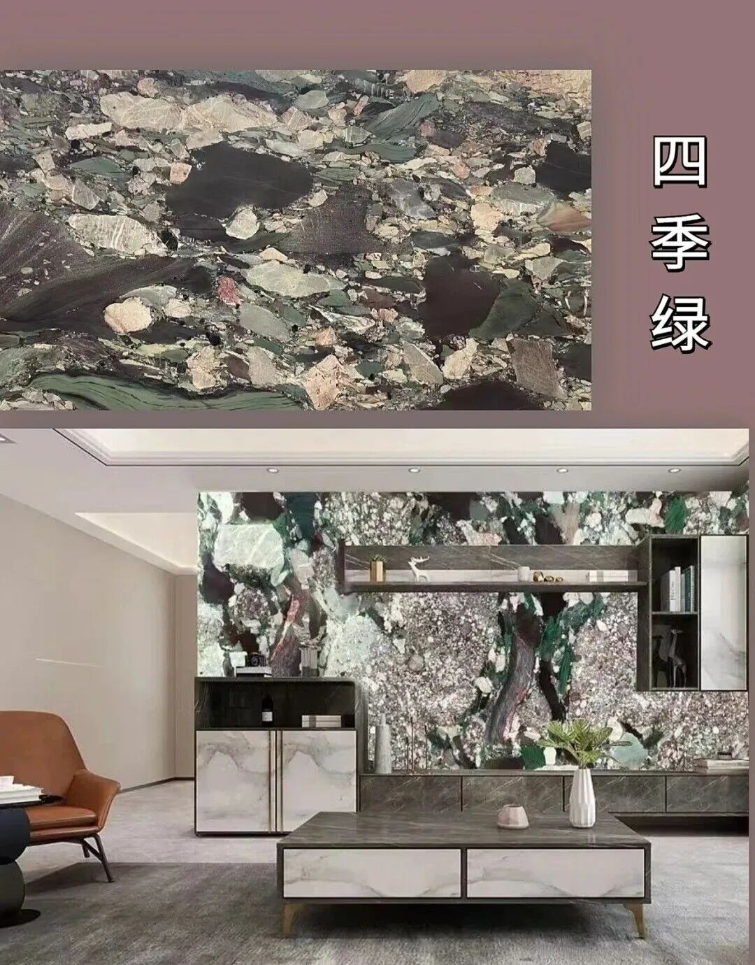 巴西宝石级珍藏石材,因含有大量蓝绿色宝石而被大众所知,是绿色石材里最顶流的存在,不管是颜值还是价格,都高的不能再高,因其开采难度大、产量小、优等品更少等因素,物以稀为贵。