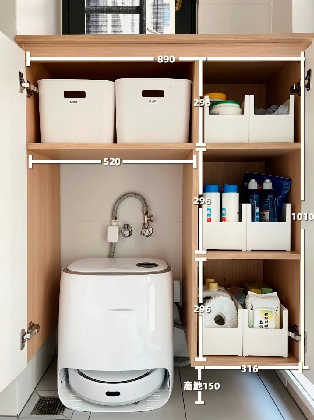 餐厅、客厅、厨房……这些地方的柜子,试试做成无底的吧!大件物品、带轮家具轻松收纳,空间利用率直线上升!