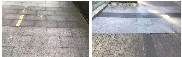 图中前端是花岗石石材,后端是PC砖,对比两者不难看出PC砖的抗污能力比花岗石差多了。