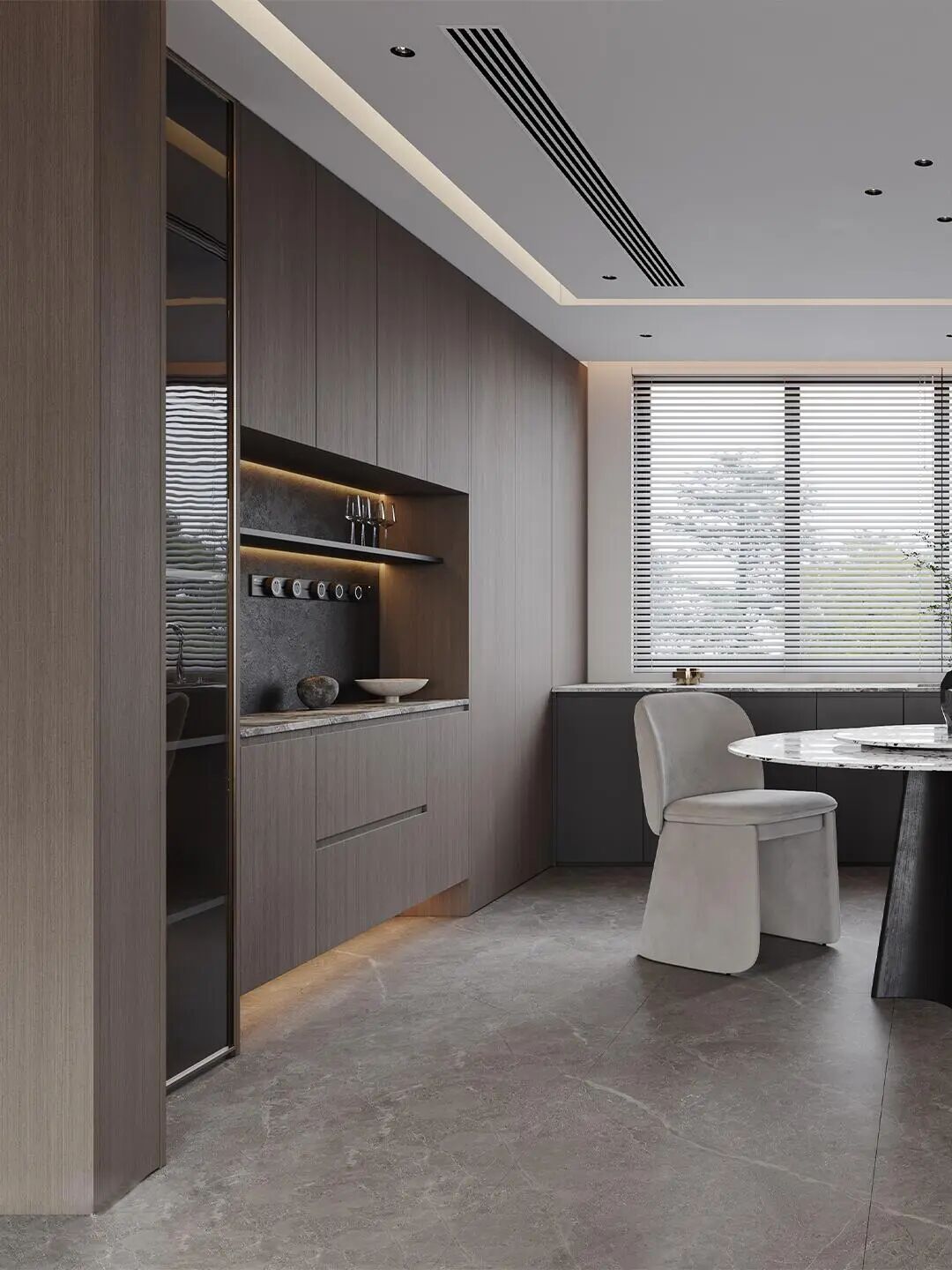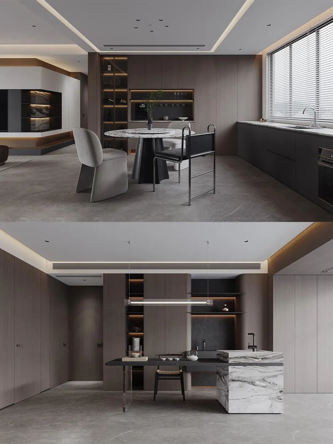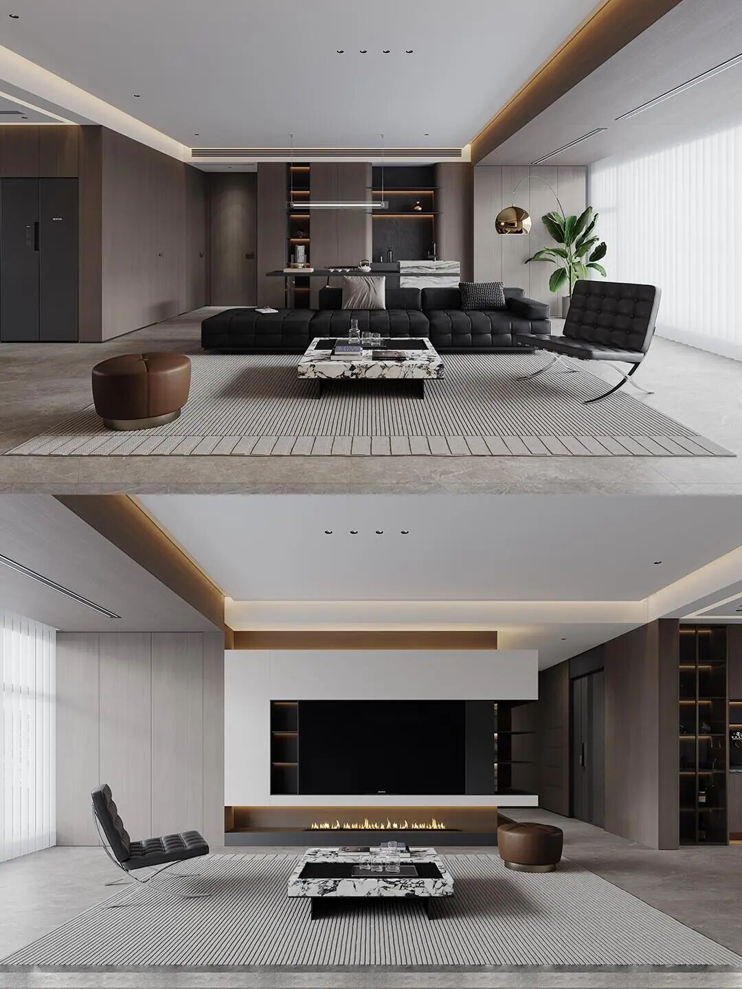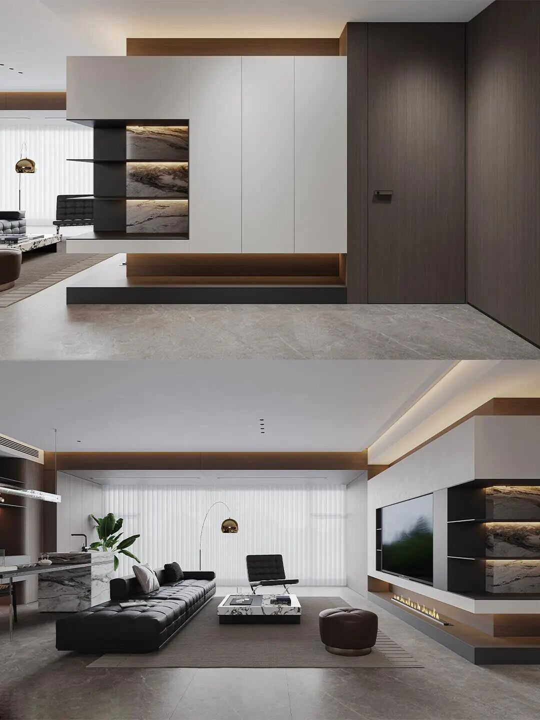 体以 “简约奢华、材质叙事、功能与美学共生” 为核心,在空间营造、材质运用和
