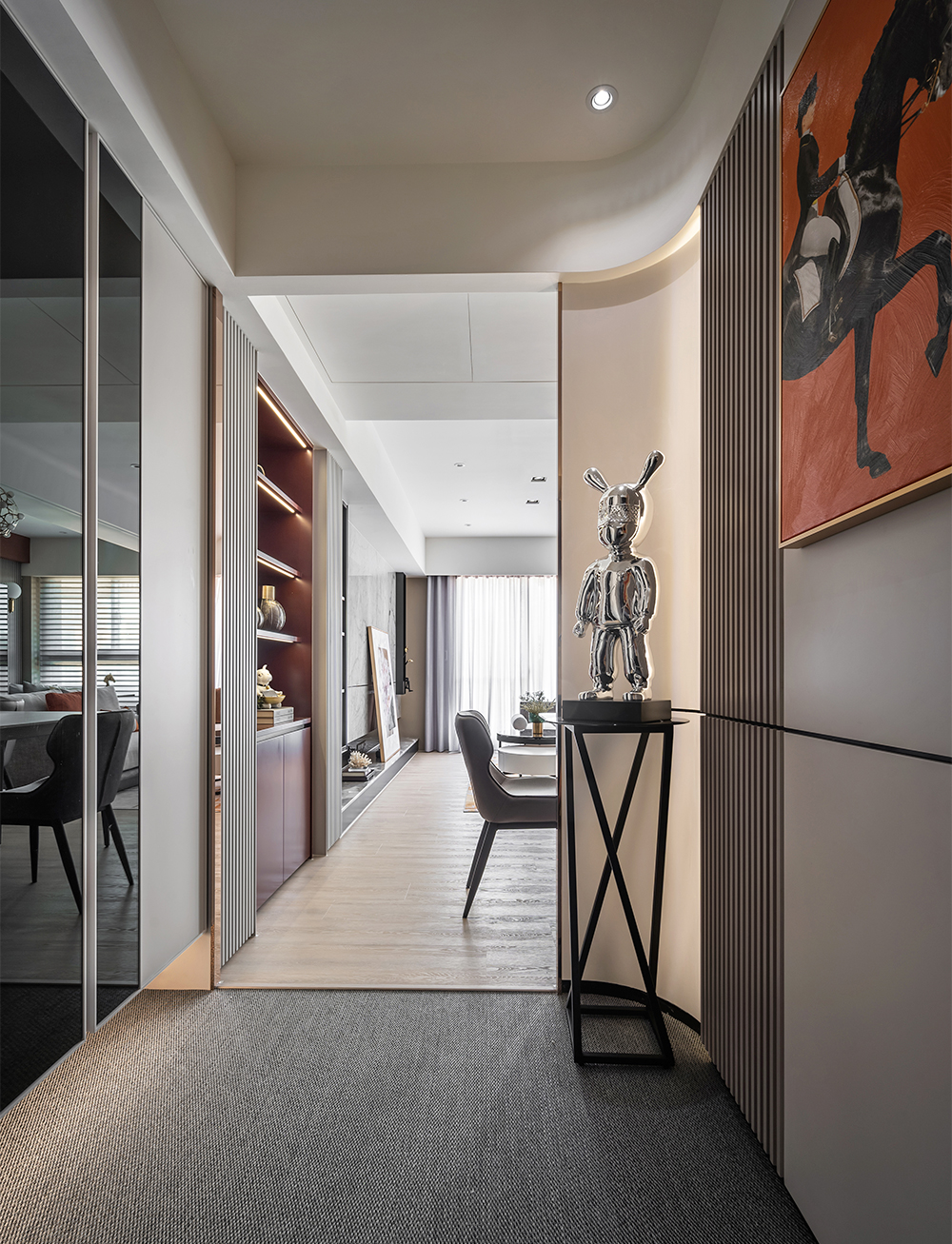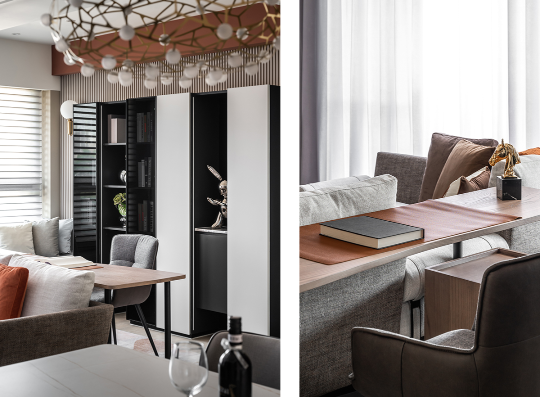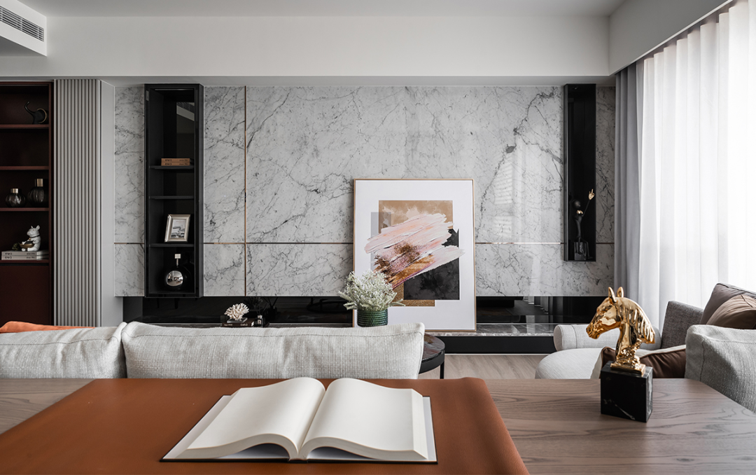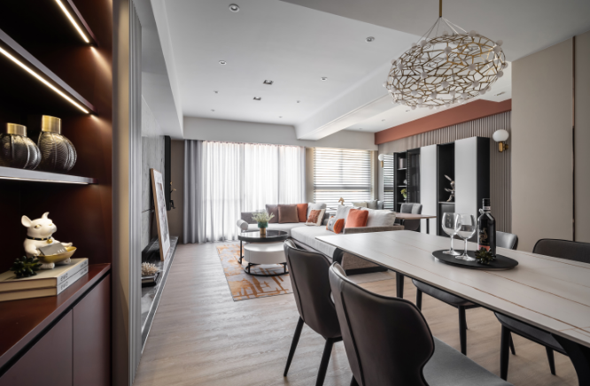 这是一套面积为97平米的现代轻奢案例,以现代端庄的格调为主,结合禅意精致的质感与设计美感,装扮出一个精致惬意的空间,搭配温馨的色调,给人以舒适放松的氛围感。