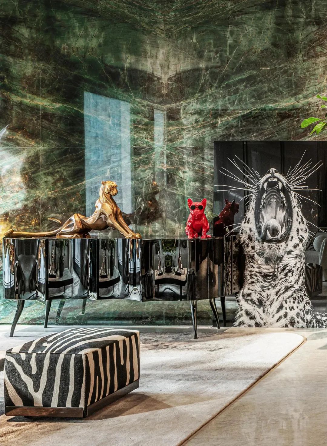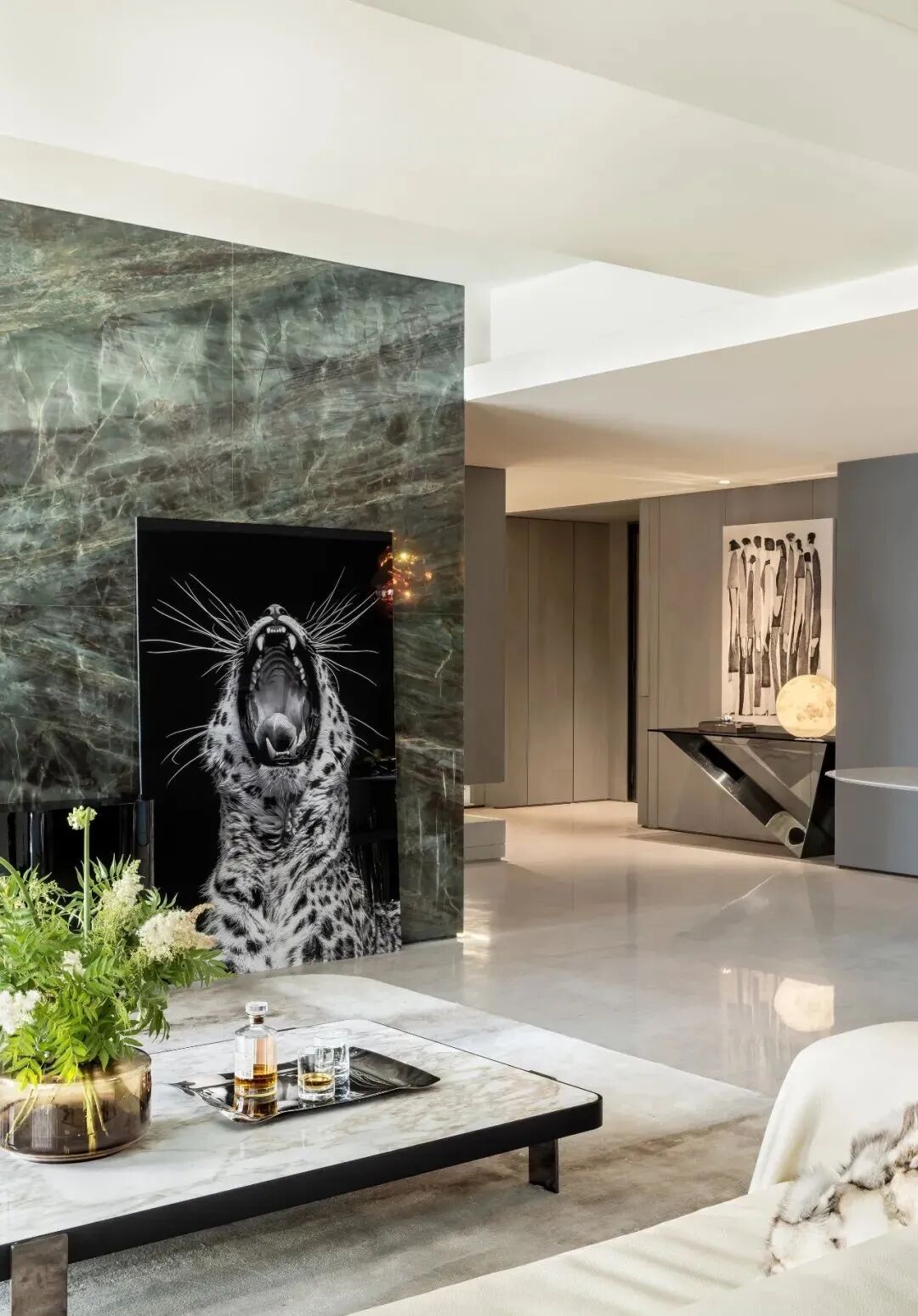 艺术家青木哲夫绘画作品与雕塑艺术《流晶洞见》共同构成了这里的艺术视觉