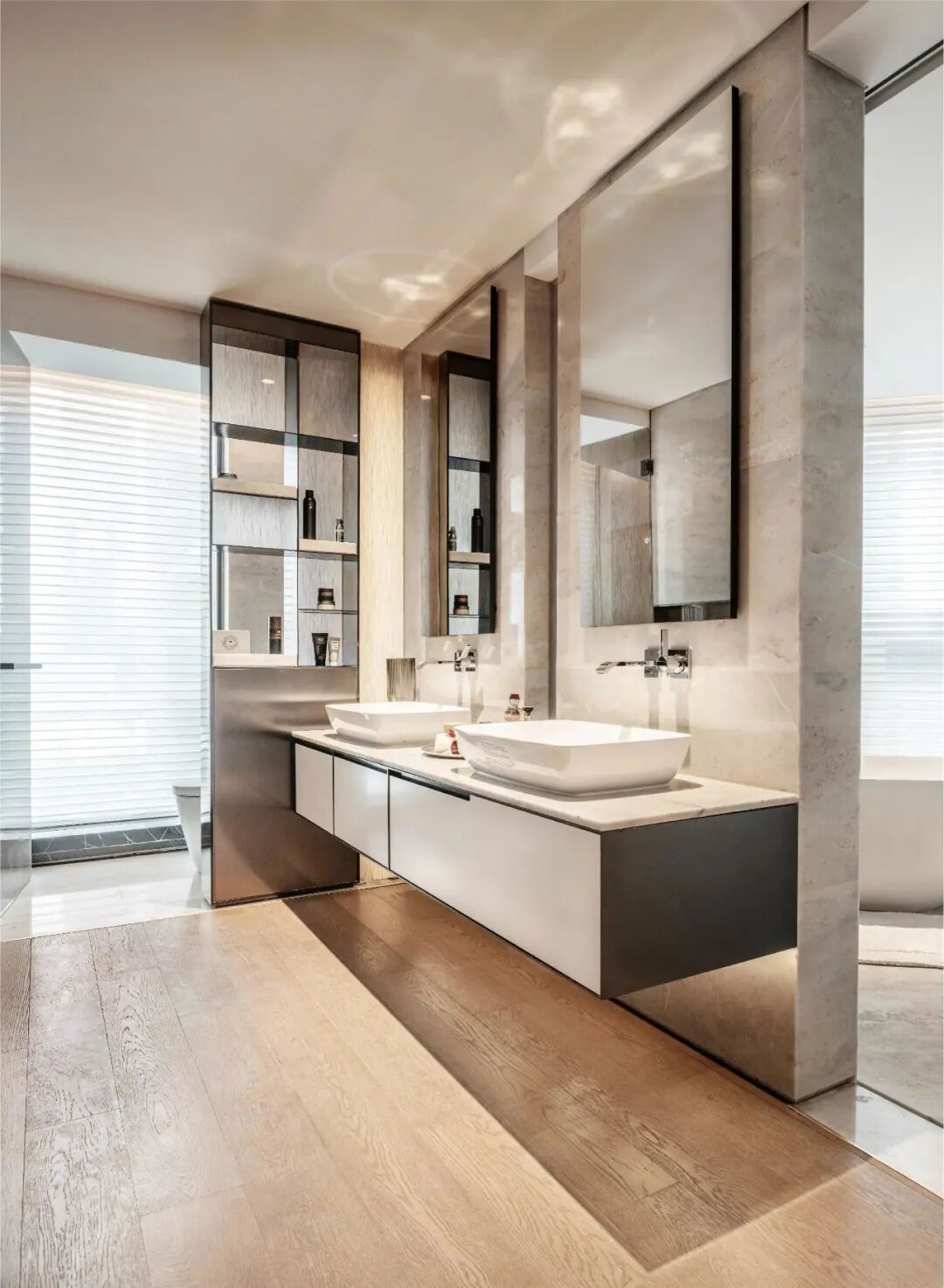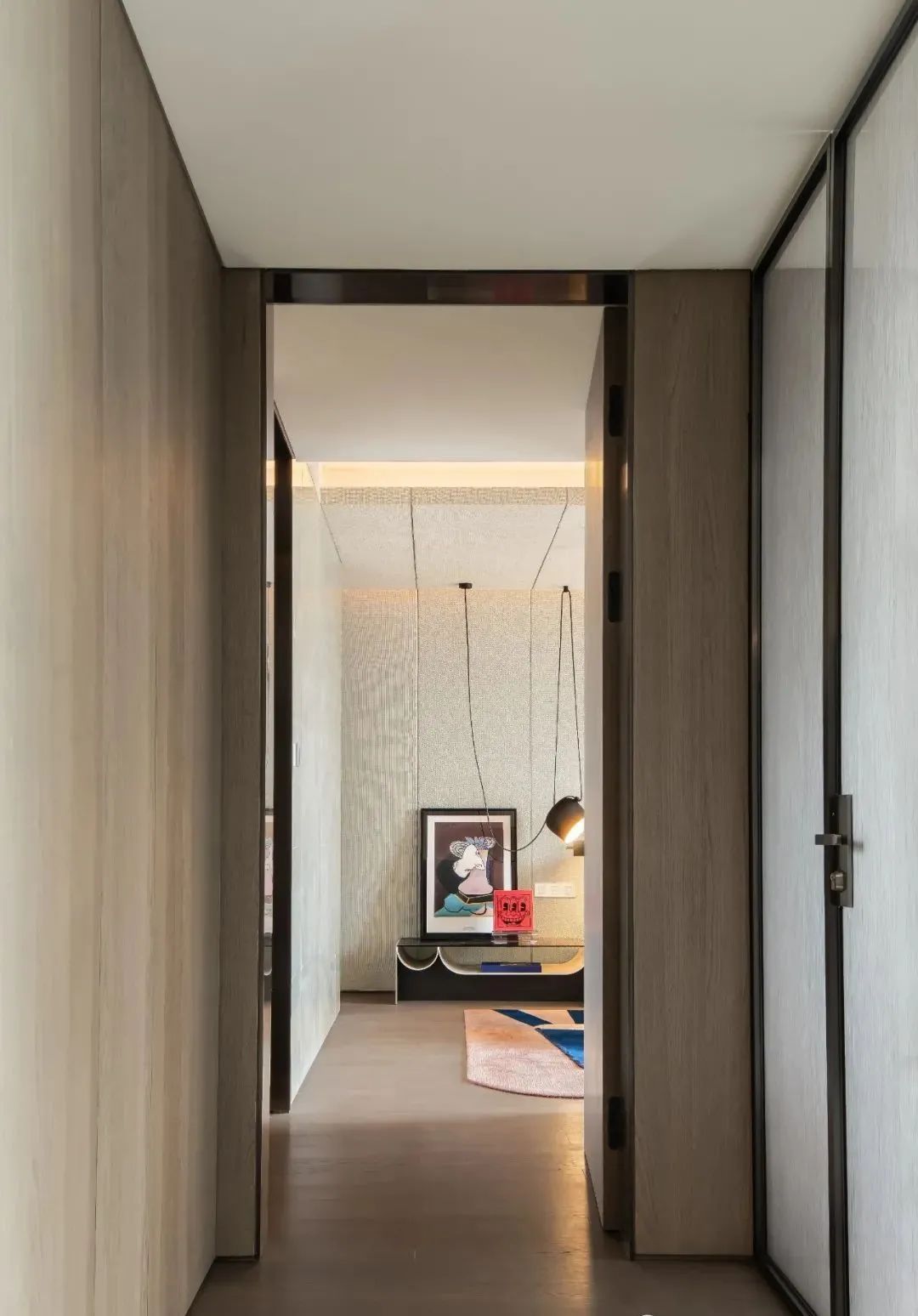 打开时,这里能够和客厅合为一体,而闭合时,这里又是最能体现整人文氛围的地方。所有功能的复合,让这里成为办公室的延伸,也成就了商务居住的核心。