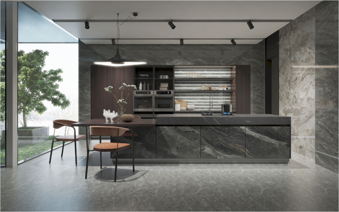 大规格岩板既能降低安装成本,减少施工浪费,省钱省心,同时又可以拥有大气雅致的装饰效果。