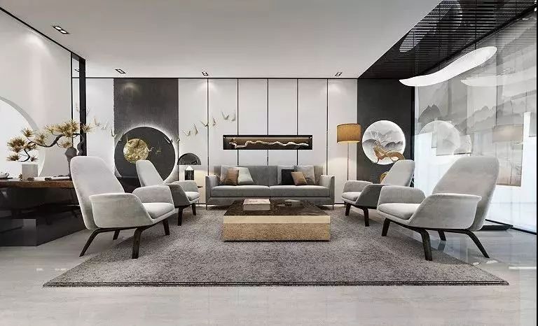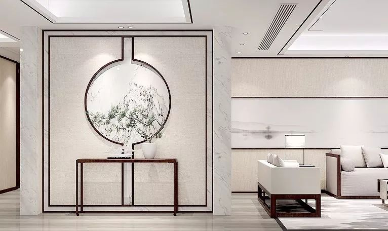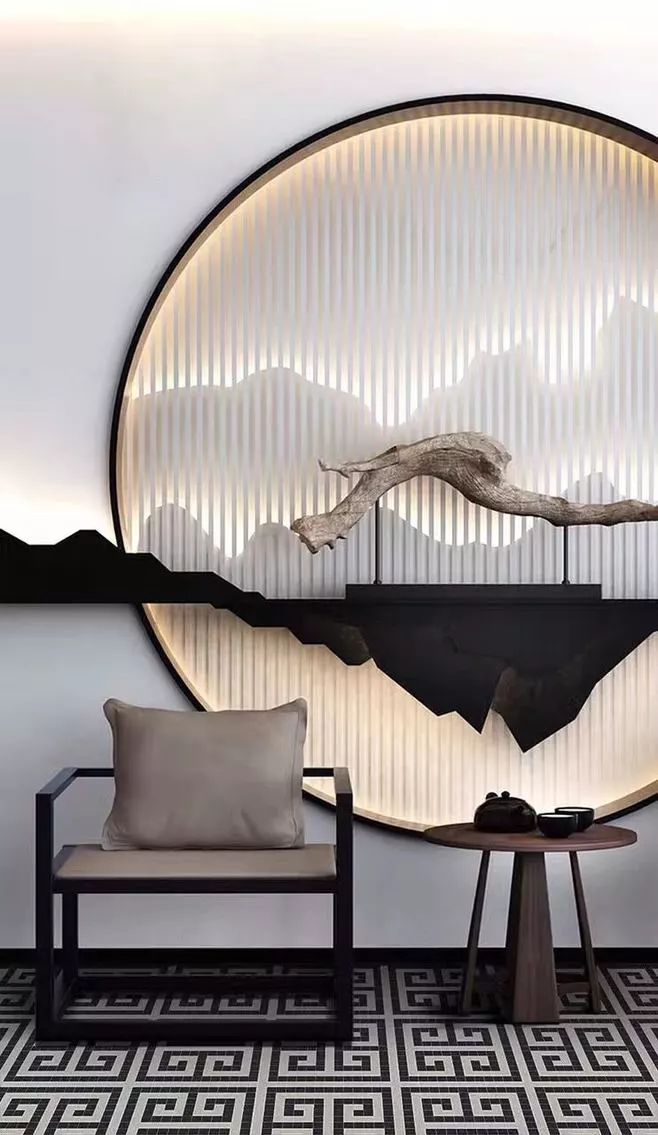 茶室空间给人的感觉是自然古朴、清新素雅的,这一点在新中式茶室背景墙的设计中得到了淋漓尽致的展现。