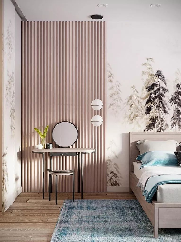 除此以外,撞色拼接、渐变晕染等更有层次美感的墙面设计,也给人一种眼前一亮的感觉,令家居更显文艺情调。