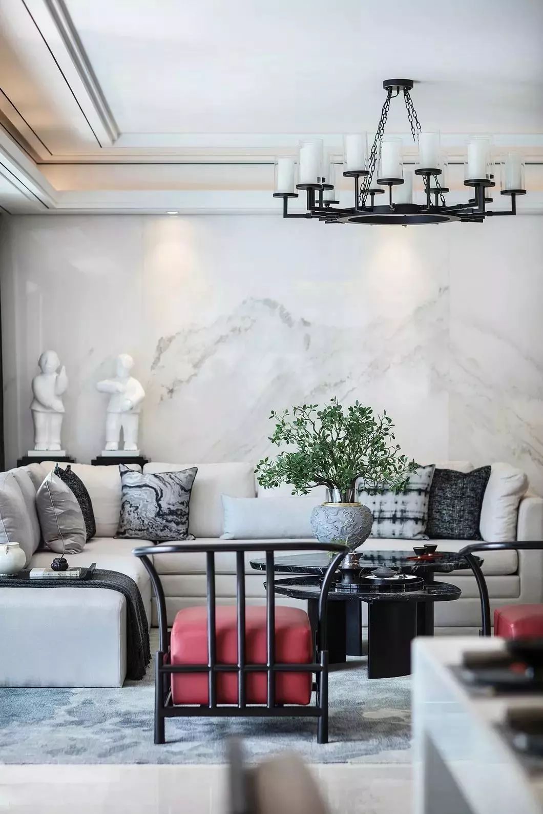 新中式风格不仅具有传统文化的底蕴,还有现代元素的创新,整体风格简洁大气、沉稳舒适,而且有种与生俱来的风雅气质,所以新中式的沙发背景墙也格外好看。