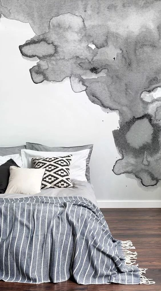 不过,像水墨一般的渐变晕染相对来说难度更高一些,虽然它的风格看上去自由随意,但其色调的比例、层次、搭配都要完美掌握,才能成就整体家居的点睛之笔。