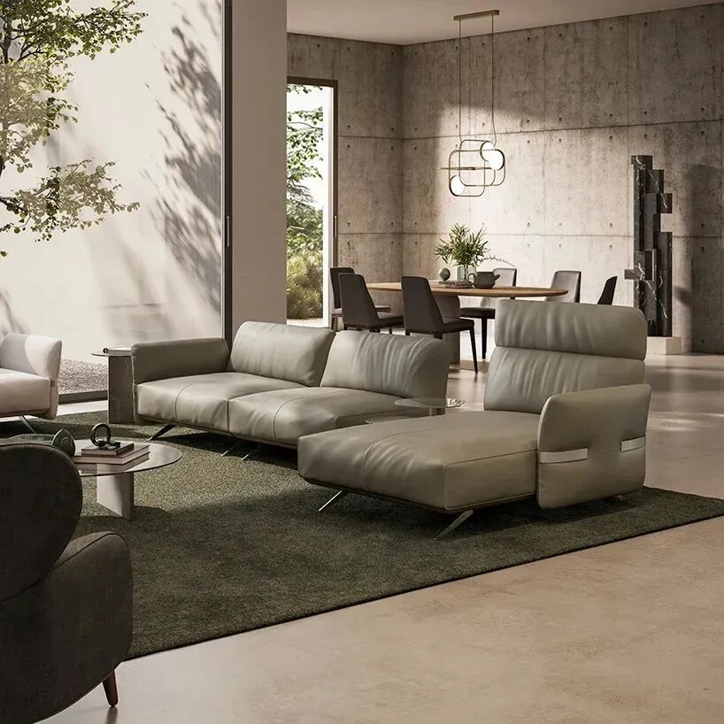 石材与皮革一旦相遇,皮革的柔软复古便能化解石材的粗犷硬朗。这种自然与人文艺术的搭配赋予了家居内敛的气氛,达到刚柔并济的效果。