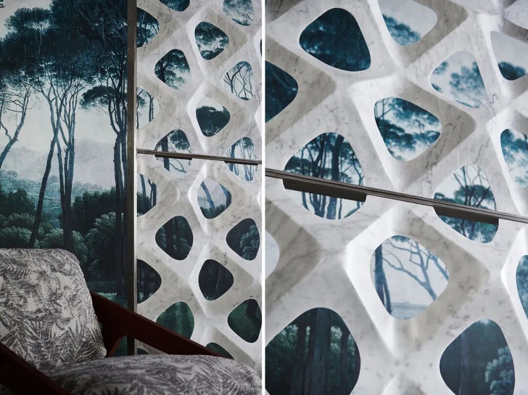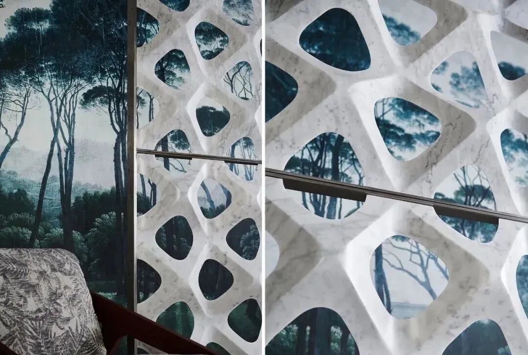 模块化的大理石设计,就像标准化的石材产品一样。通过数控机械设备加工好之后,可以随意拼接延伸。今天我们来看下国外的一些流行设计,在隔断上的使用,你觉得效果怎么样?