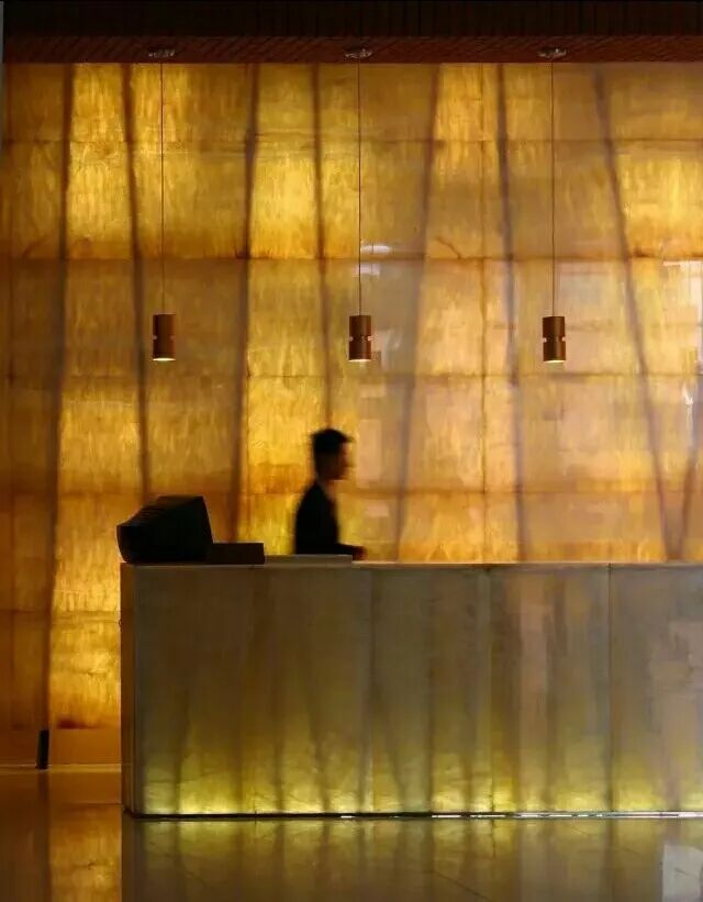 将4mm的玛瑙石薄片复合在两片玻璃中形成的特殊夹层玻璃,由于更薄透光效果更好,强度也能得到保证,这也是现代技术发展的结果