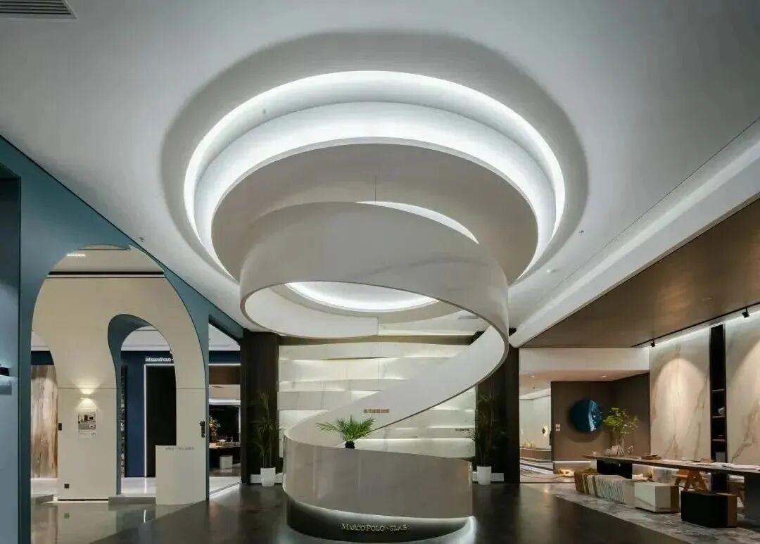 弯曲岩板满足了曲线美学设计需求,完成圆柱、穹顶、弧形转角等多种形式的组合。