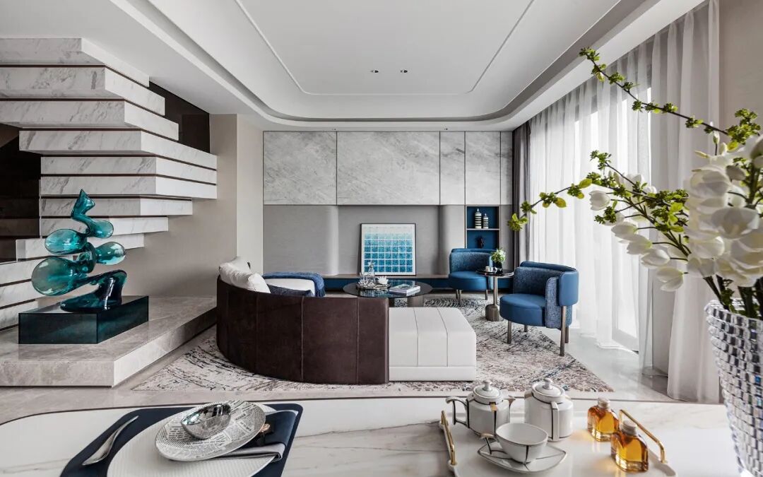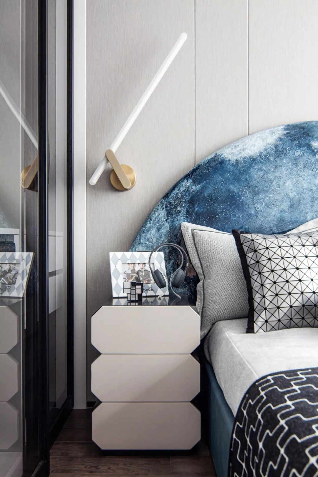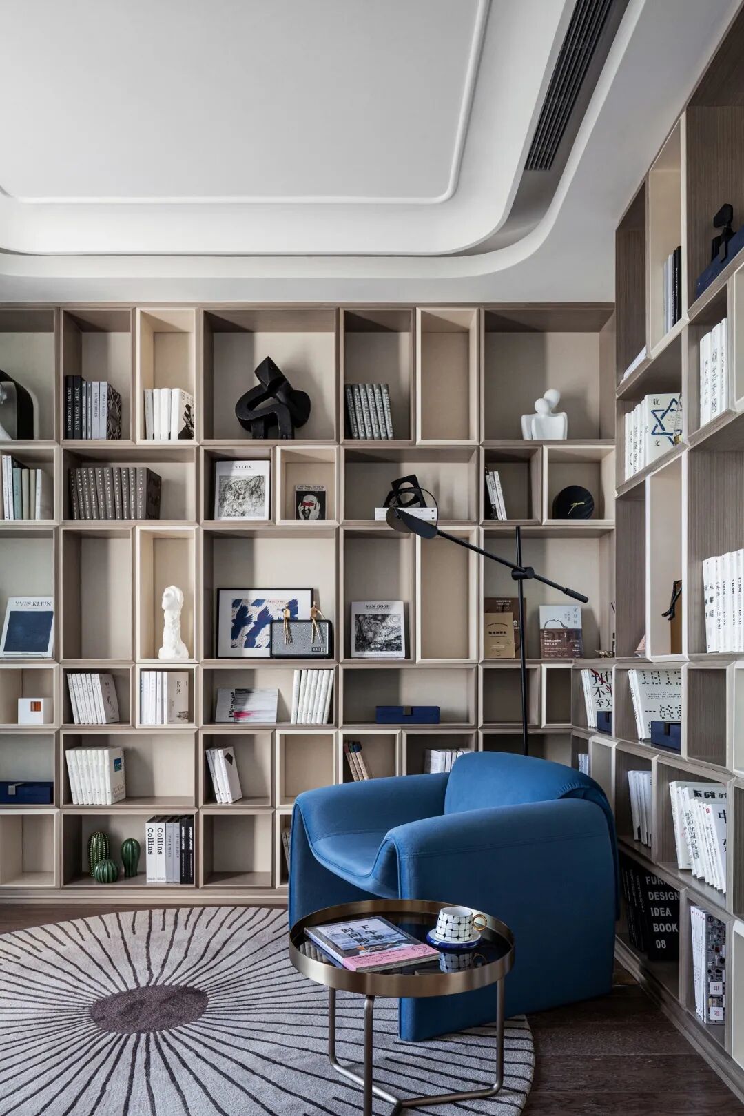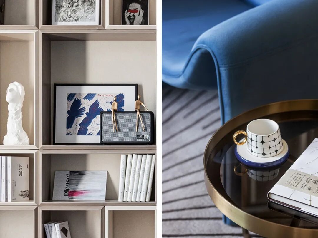 以深邃浩渺的幽蓝,抒写空间独特的魅力。而造型别具风格的灯管、艺术摆件、台灯等,又让空间多了一些创意趣味。