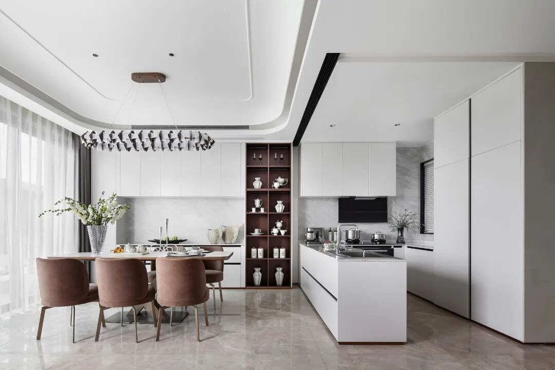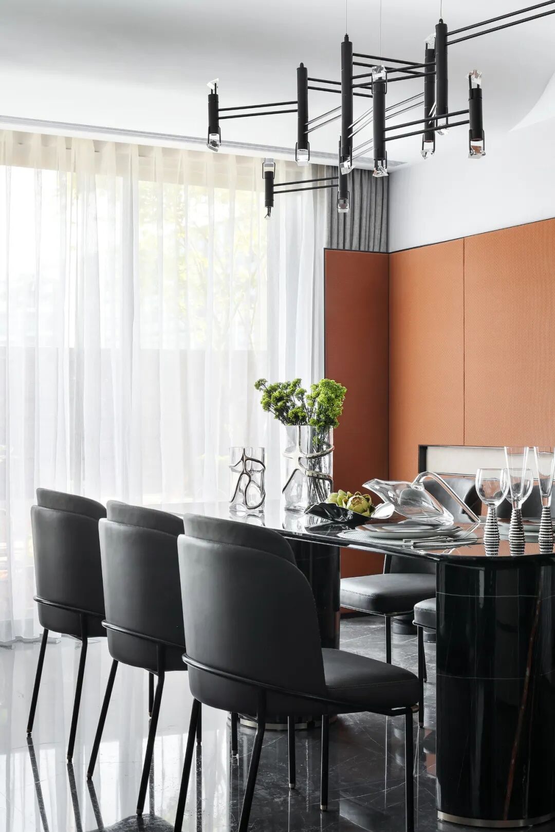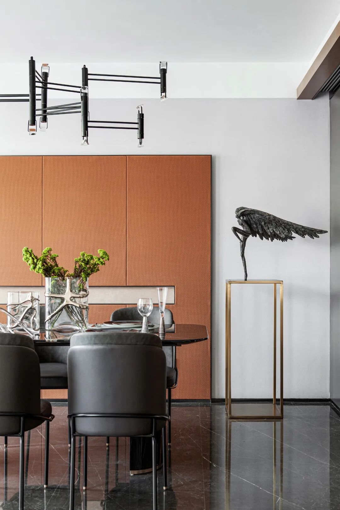 大气稳重与舒适雅致并重,设计将雅致都市生活与现代艺术结合,并借由开放的布局、灵活的动线,共同促成了整个空间简洁又极具质感的视觉印象。