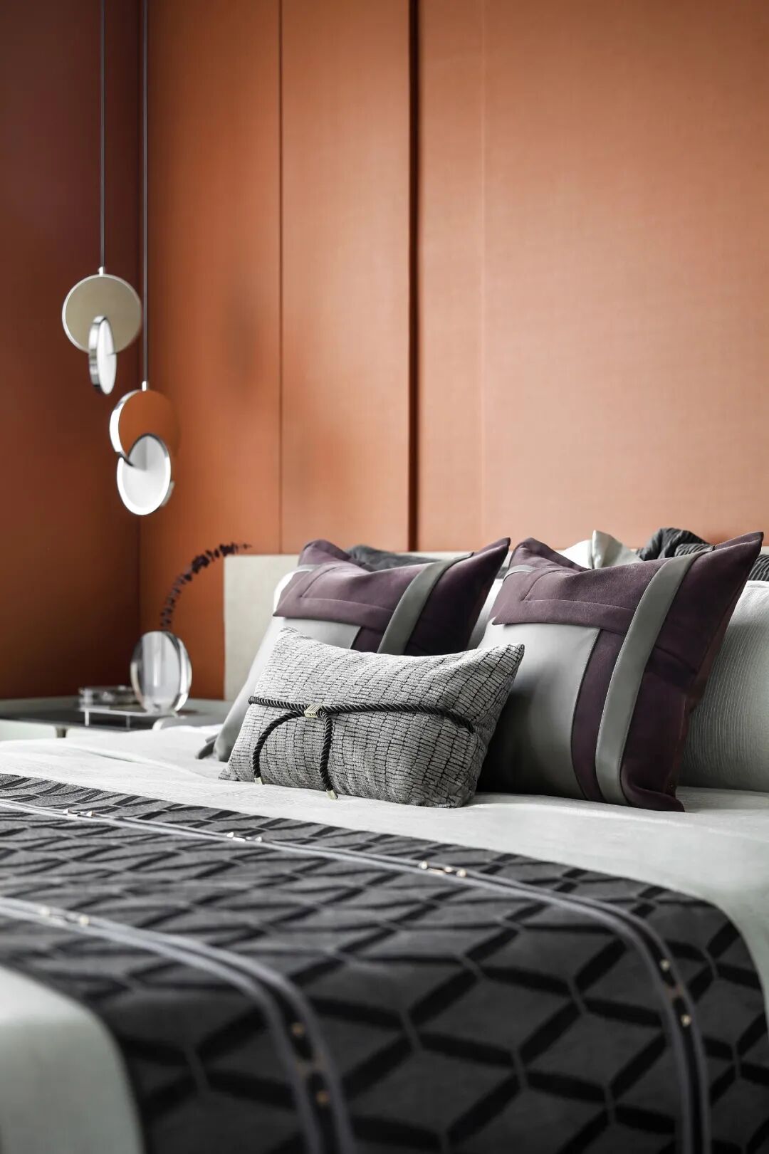 老人房以暖棕色作为设计主调,整体低调而富有质感,层次丰富的软装陈设,在营造舒适氛围的同时,也体现现代语境下家的温度。