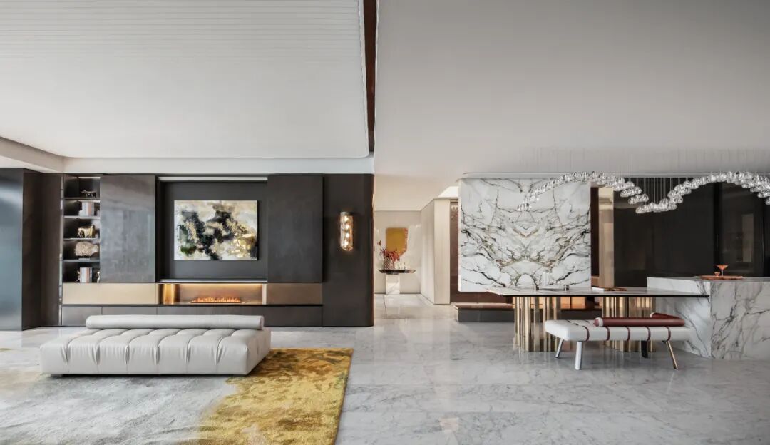 经过严格甄选的奢石与大理石,以材质的天然纹理,与各种进口的皮料搭配呈现,整体线条流畅、简洁,充满了情调,同时考究空间灯光、色调和材质等氛围营造进行组合,营造自然与人文气质呼应的豪宅空间。