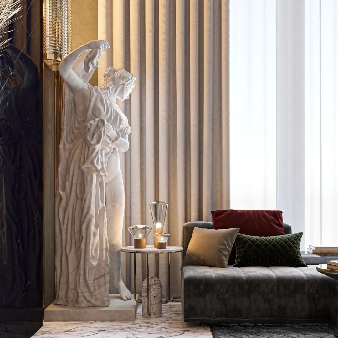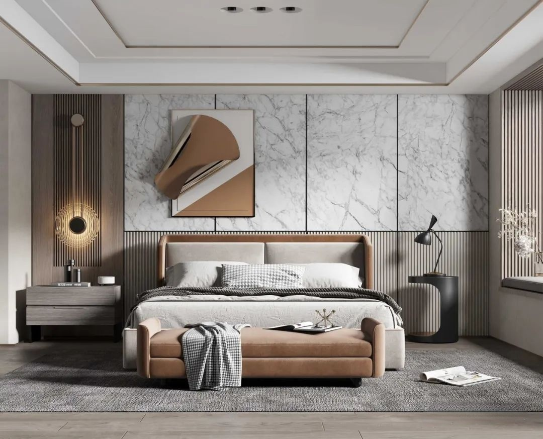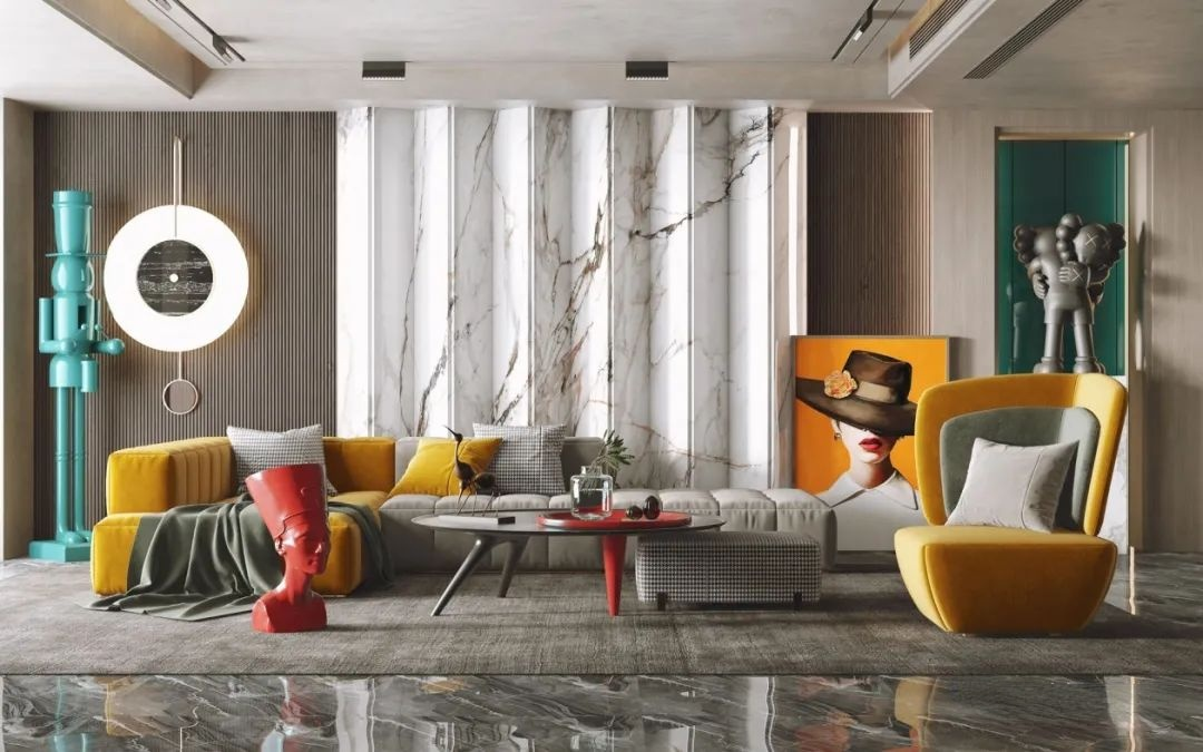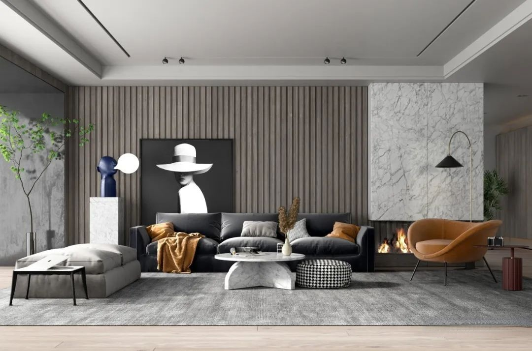 天然大理石纹理天然,质感细腻,能完美地与木质、金属等异材质的家具进行搭配。与木质家具搭配能够呈现出刚与柔的对比关系,为家增添自然韵律。