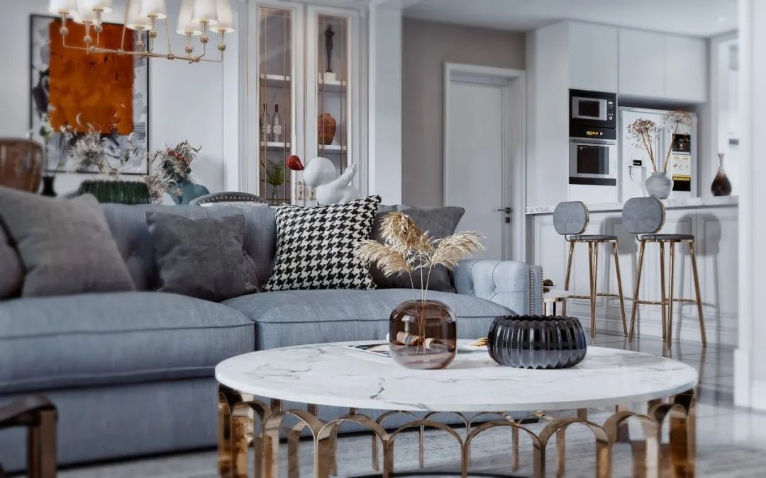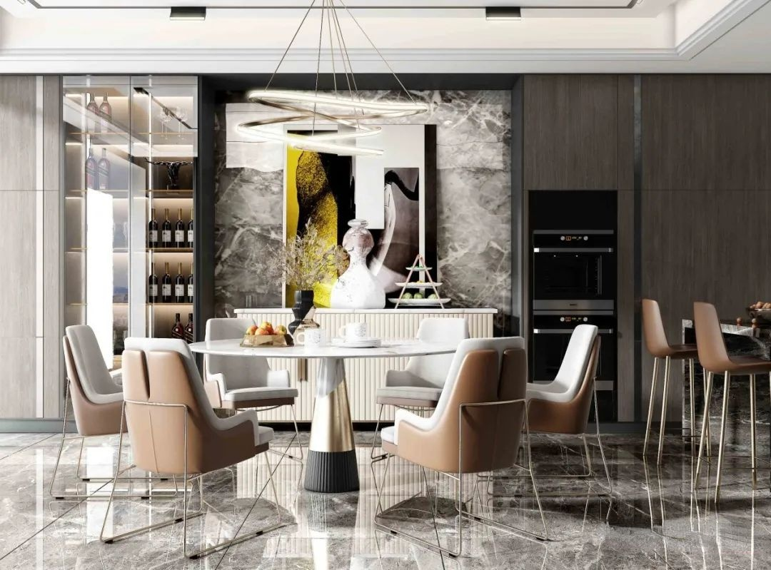 天然大理石与金属家具进行搭配,金属的线条轮廓,能衬托出大理石坚硬饱满的质地,让家居空间充满精致格调。