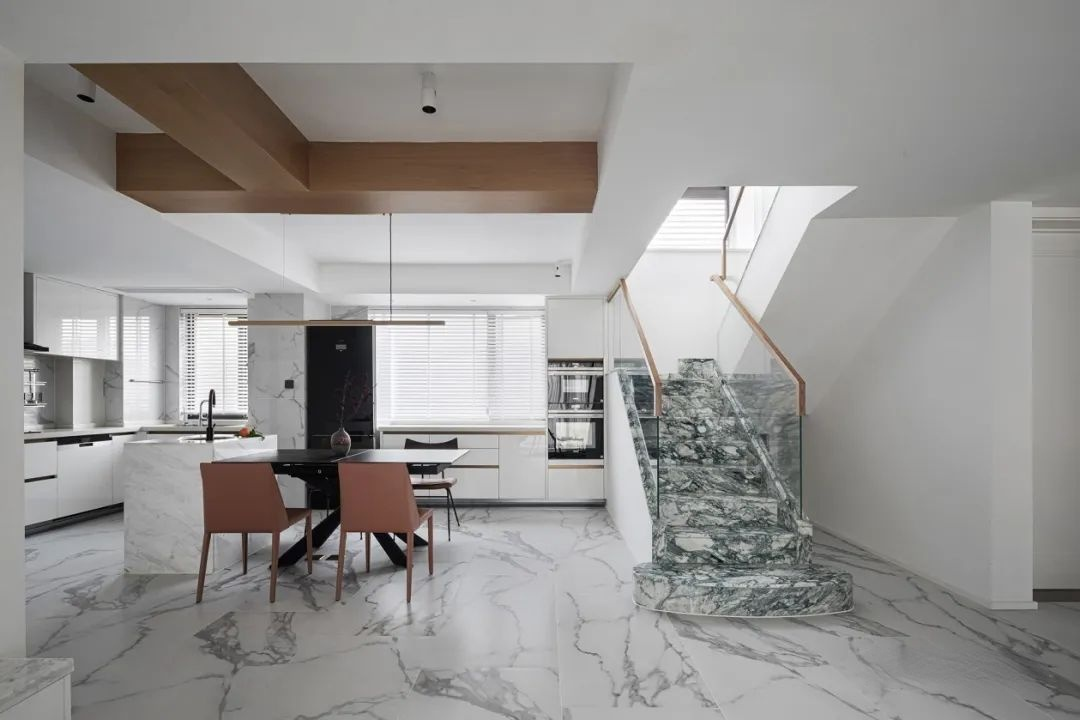 在众多天然石材中,大理石所形成的纹理图案灵动自然,变化万千,自带写意的效果,使之与当代简约精炼的设计风格找到融合点,因而备受设计师青睐,能够在设计师的手中绽放诸多惊喜。