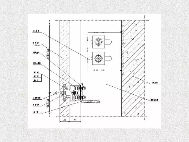 干挂石材是建筑外墙的一种施工工艺,该工艺是利用耐腐蚀的螺栓和耐腐蚀的柔性连接件。