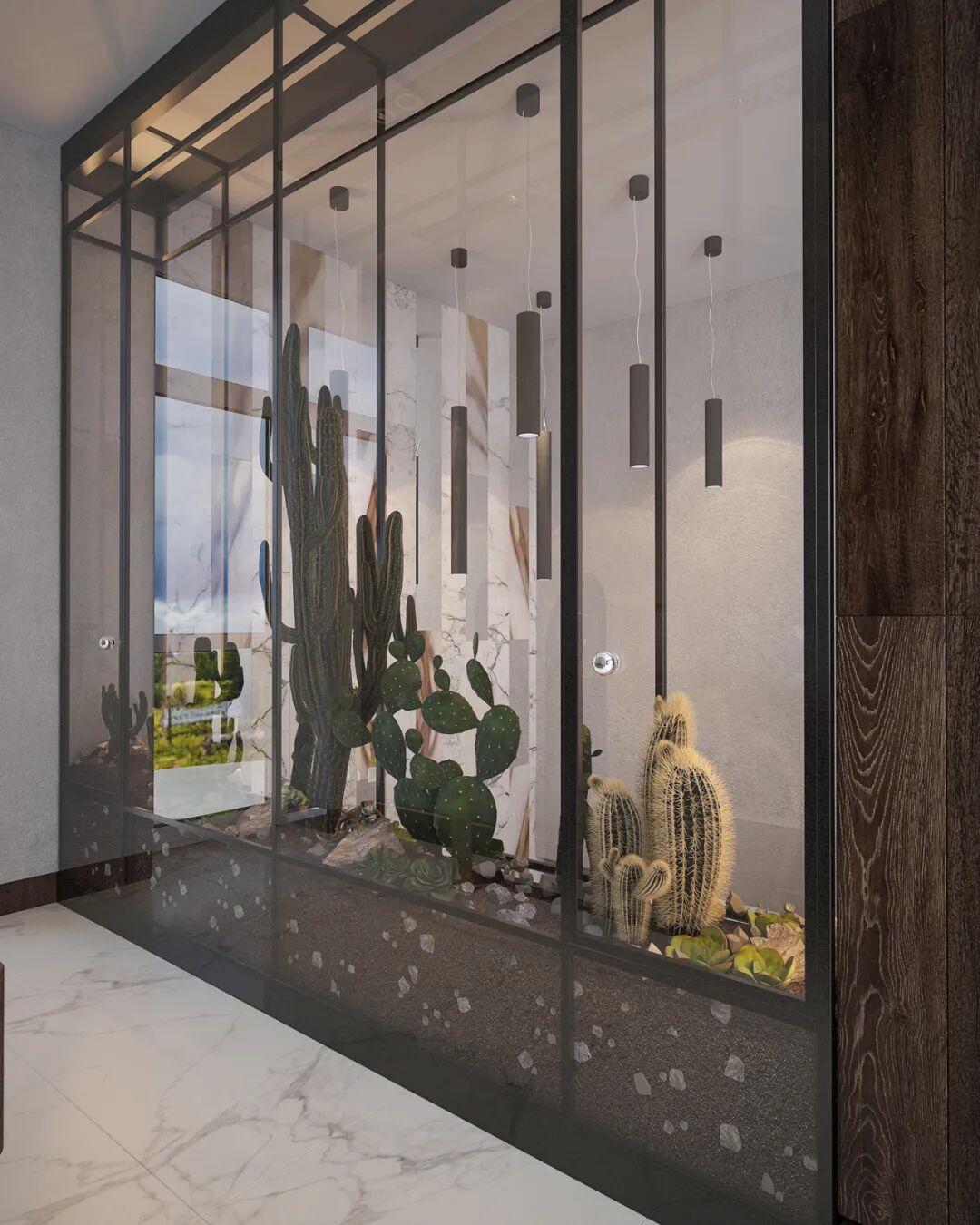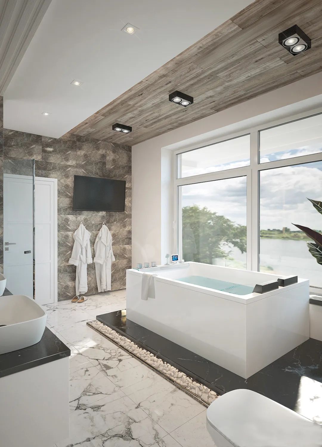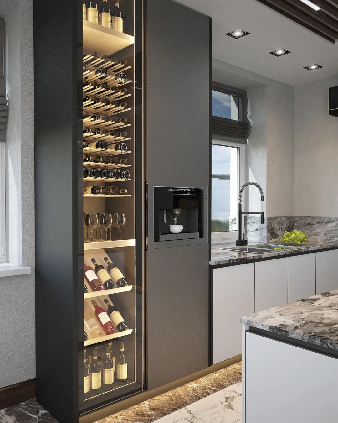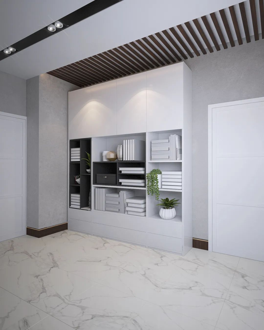 整体的空间打造采用极简的设计风格,通过用大理石搭配黑白灰来体现空间的高级感,体现出了设计师丰厚的设计美学底蕴。