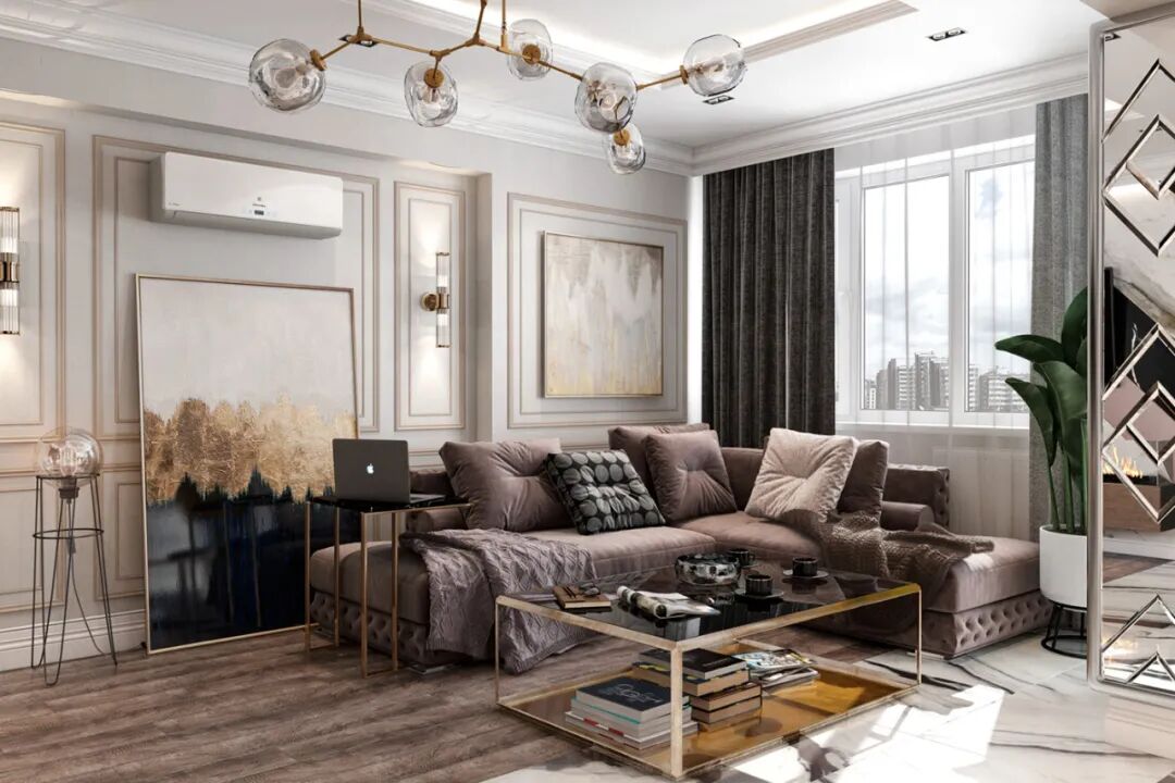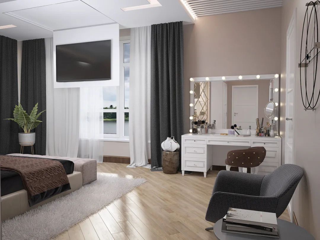 客厅的主要色调为黑白灰,整体看上去高级大气,有一种欧美元素的感觉,空间中用各种家具搭配和颜色来相互呼应,给人一种全新的视觉体验。