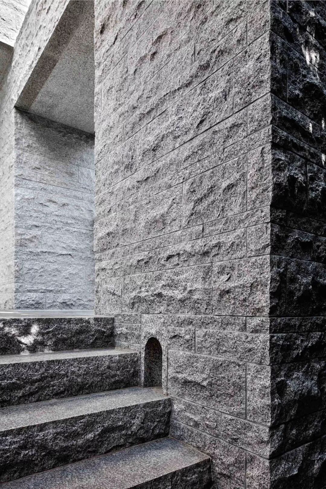 建筑的内外空间共使用了三种不同的花岗岩材料。因此,平衡各种花岗岩材料在室内外的使用数量便显得尤为重要。