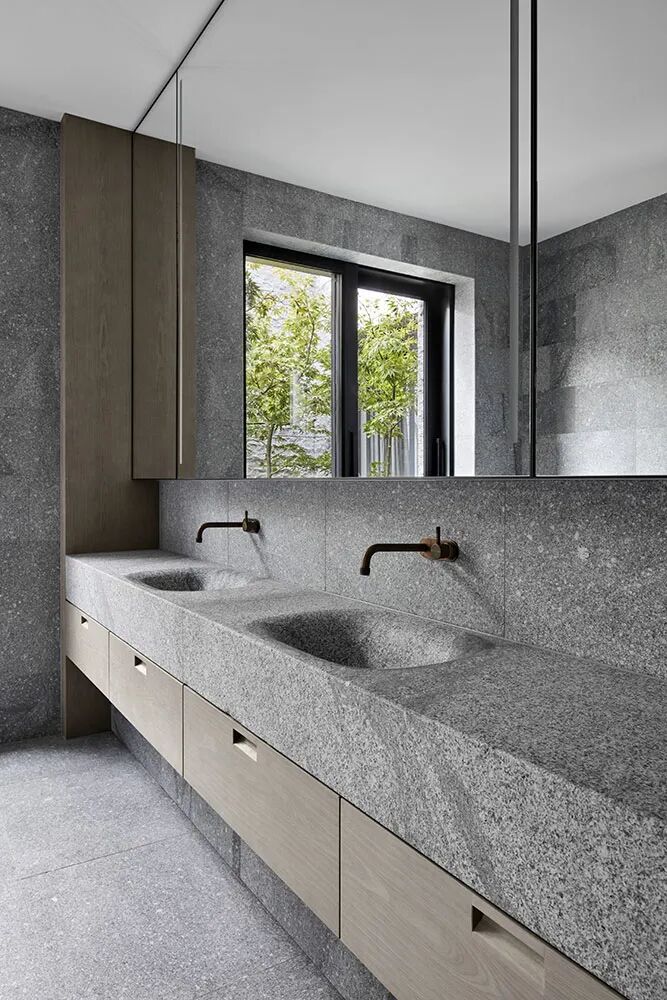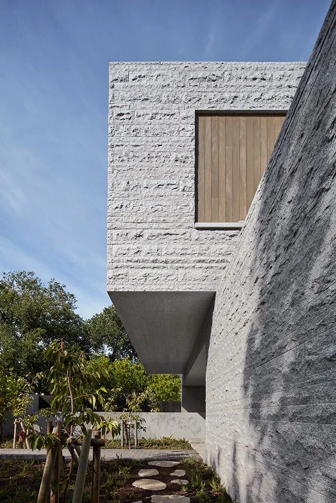 一眼望去,这栋位于墨尔本的三层住宅便给人以轻盈的印象。阳光在花岗岩外立面上的折射,令建筑如同在场地中轻轻浮起。这似乎与重达260吨的花岗岩特性不符。