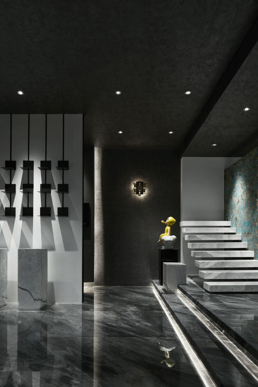 整个空间的基调是黑白色,这个空间给人的感觉十分的干净和清透,黑白的使用不会让空间单调,反而透露出一种现代高级感。