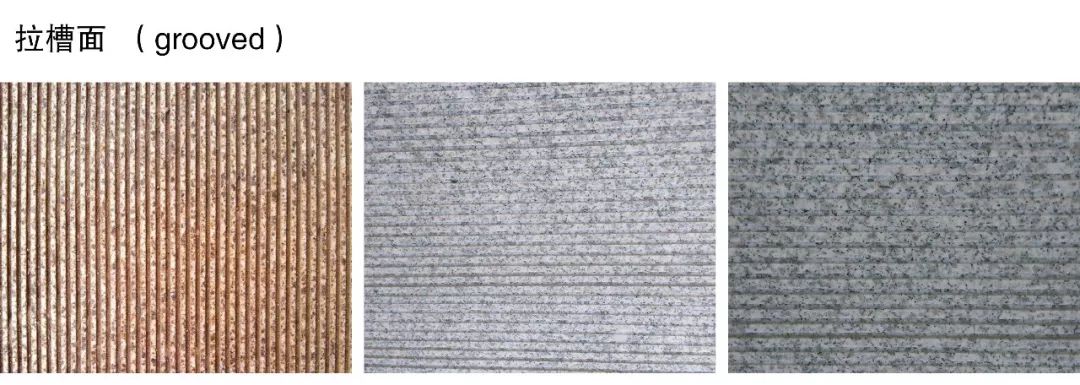 (11)拉槽面(grooved):石材拉丝面也叫机刨面,在石材表面上开一定的深度和宽度的沟槽,是石材的一种特殊的加工工艺,能够起到防滑跟纹理特别的质感。