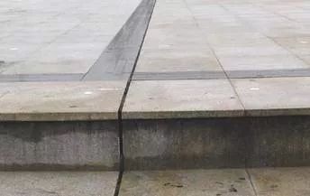 (4)火烧面( flamed ):表面粗糙,生产时对石材高温加热,晶体爆裂,快速冷却形成粗糙火烧表面,是花岗岩最常见的饰面种类,景观设计中铺装最常用的饰面材料。