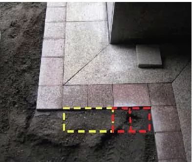 通过样板试铺可以确定各种材质是否协调统一,明确具体的施工工艺,如各材质间缝宽大小、凹缝深浅、勾缝剂颜色、效果等的具体要求。