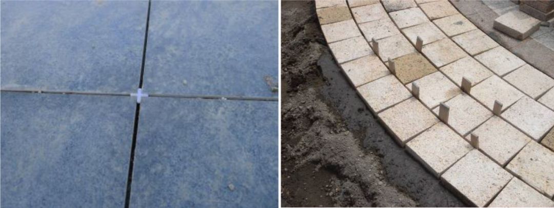 2、留缝铺装缝宽依设计要求,铺装施工过程中需用工具(如挂线、十字花)辅助控制缝宽,尺差不应超过1mm;