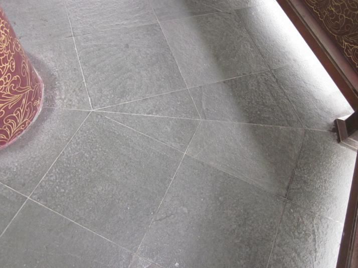 (7)仿古面(flamed+brush):为了消除火烧面表面刺手的特点,在石材先用火烧之后,再用钢刷刷3-6遍,即形成仿古面。仿古面的做法还有很多,比如火烧后水冲、酸蚀、直接钢刷或高压水冲面等。仿古面的加工比较费时,同时价格也比较贵。