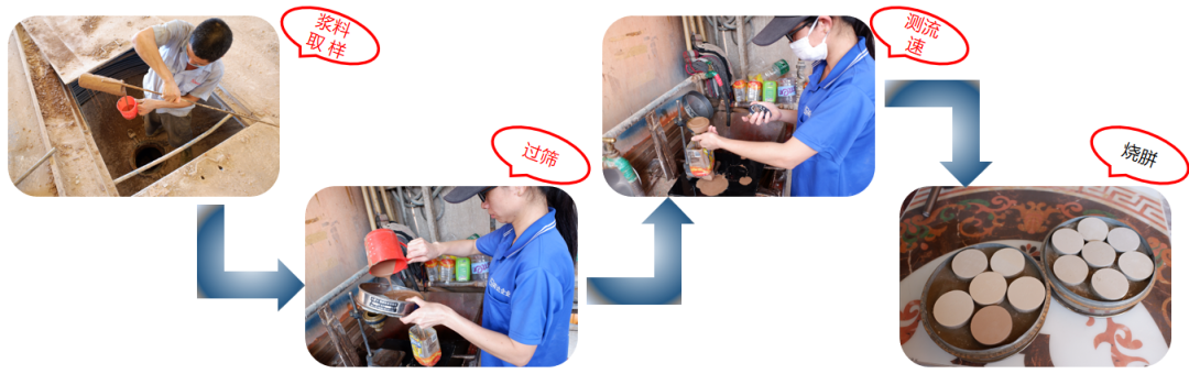 球磨浆料检测(浆料的细度、比重、水份、流速检测,必须达到工艺标准后可以放浆,未达到工艺标准的要重新返球研磨;每天要将浆料打饼测好白度留样,便于后续跟进和配方稳定。)