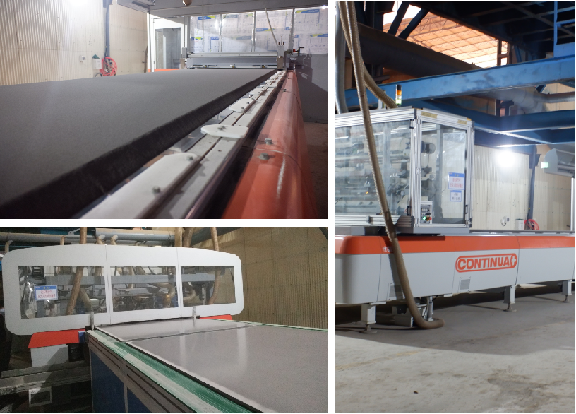 压制成型( 采用全球先进的萨克米岩板生产设备,连续滚压成型技术,压力高达38000吨)