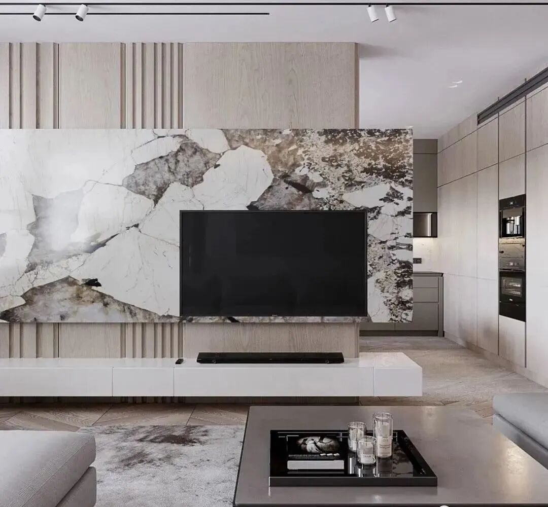 潘多拉板面由灰色、白色、金色、黑色四色组成,纹理变化如波涛涌动。天然石材光泽,呈现出艺术与自然的风采。将潘多拉融入空间,赋予空间一点神秘感,给空间注入一丝色彩与时尚,给生活增添一点乐趣。