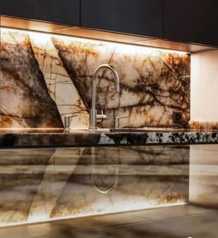 厨房橱柜:厨房这么朴实无华的地方,却因为一块潘多拉奢石,而彰显出了它的高贵与品位。并将美丽与魔幻之间所产生的一股迷人力量,融入到厨房生活中。