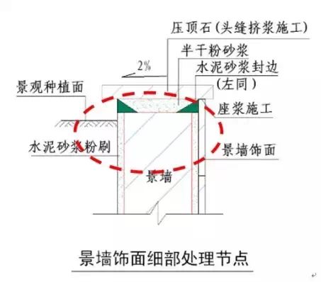 (3)种植土高于压顶石底线,施工不规范,容易产生泛碱现象。
